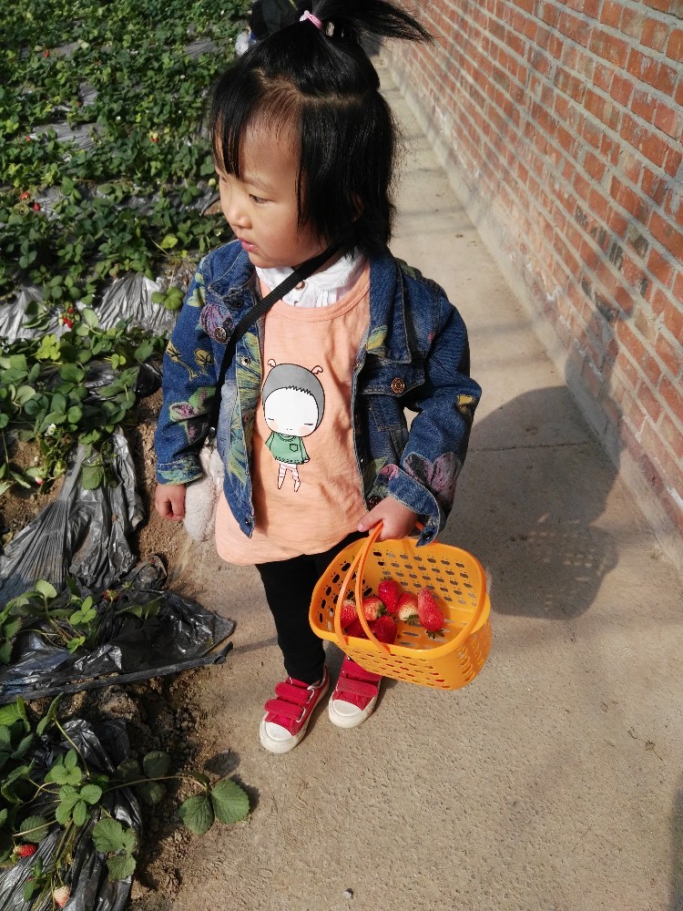 虽然早上的空气还是发凉,不过看孩子的照片,发现已经慢慢脱去了厚厚的羽绒服,换上了轻便的衣服,而那株马路对面的不知名的书已经悄悄花开满枝头。 悄悄的春天就到来了,小草在不经意间开始复苏发绿,路边高大的杨树开始吐着嫩芽,偶尔的迎春花已经满眼黄色,桃树也不甘示弱的开满枝头。 一直期待着可以带北北去踏春,可是好像时间都不知道去哪了。上周日,在北北的强烈要求下,带着北北去采摘园摘草莓。近几年,各类的采摘园雨后春笋般的冒出来,在回去北北姥爷家的路上,各个名字的庄园,采摘园分列在道路两边。我们这次选了比较近的一个,一个上午结束行程。虽然时间不长,但是随了北北的心,北北摘的很开心。