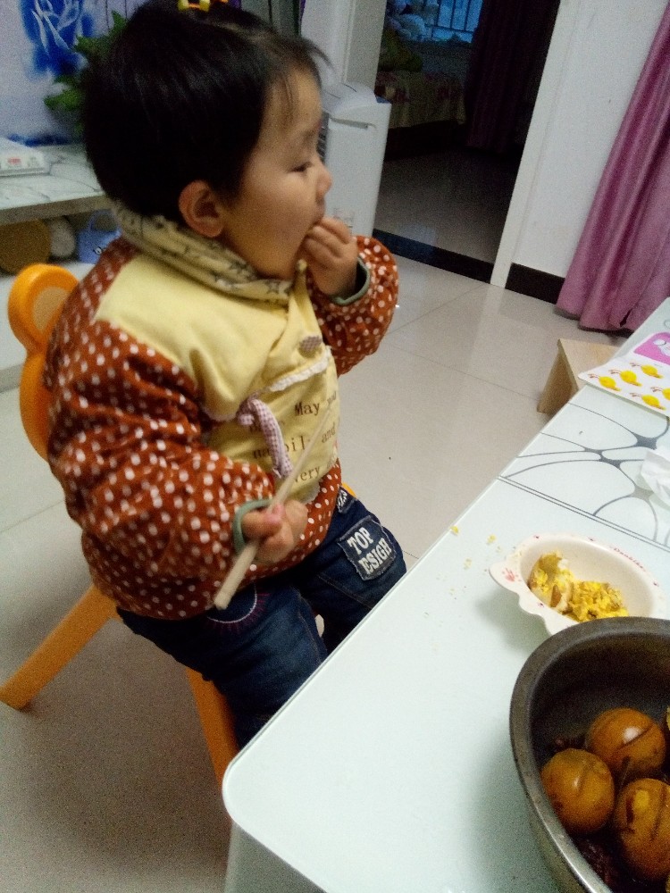 我家宝宝有点贫血,我就去超市给宝宝买鸡肝,不管怎么吃吧,总能补充一点铁,而且总是让婆婆买的话,婆婆也会找到很多理由忘记的,还是自己来的比较放心。婆婆在早上做饭的时候会用妈妈买的煮蛋器给宝宝煮几个鸡蛋,然后每天给孩子吃一个, 宝宝不爱吃。最近好久都没有吃鸡蛋了,我想给宝宝吃点,但是考虑到宝宝之前总是吃煮鸡蛋吃的很不喜欢了,就得把鸡蛋做的不一样,让宝宝吃的开心。