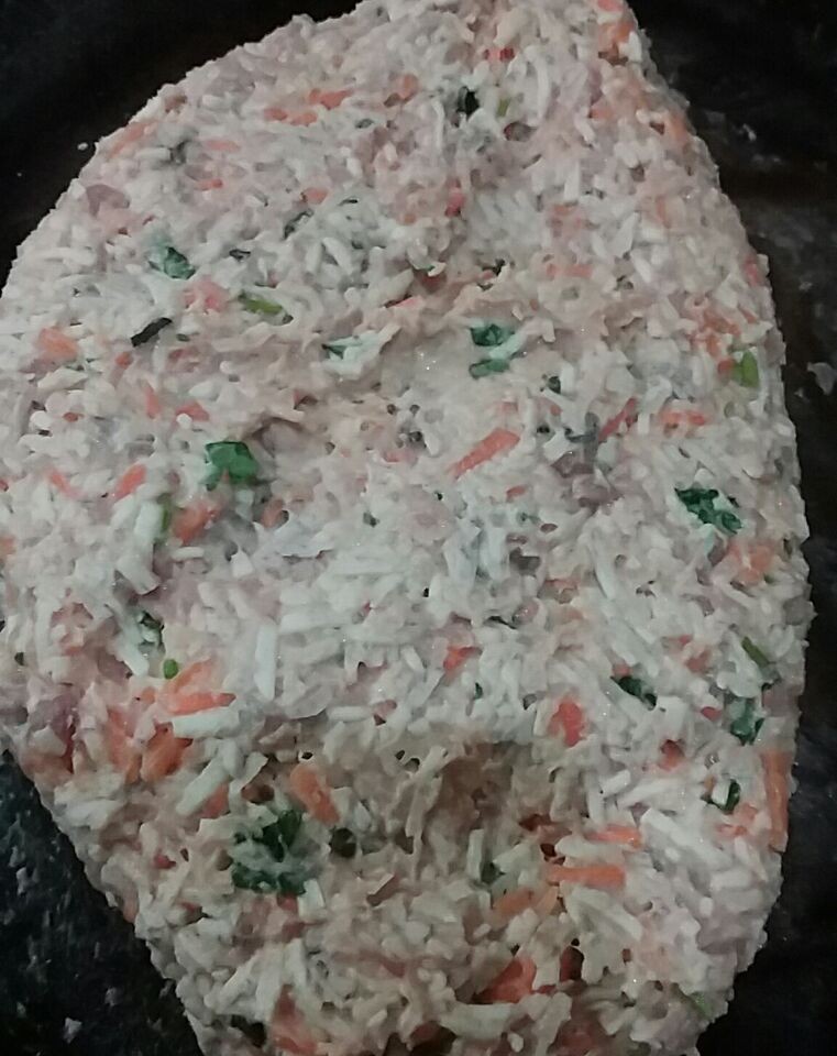 那天早上我送小不点去幼儿园时,宝爸叫我去菜市场时买些芋头、猪大肠、胡萝卜和鱼肉回来,他准备尝试做酿大肠。考虑到家里还有几根邻居送的胡萝卜,所以我就说胡萝卜家里还有,不需要另外买,我买其他的材料就行。因为我不喜欢吃大头鱼的鱼肉鱼腥太通重了),加上没有新鲜的鲮鱼肉卖,所以我就买了条鱼刺少的大钳鱼回来,然后让宝爸自己起鱼肉。鱼肉处理好以后,宝爸就开始剁鱼肉了,鱼肉剁好后他就与其他的一起混合在一起,然后调味备用。 看,下面这些就是宝爸剁好的食材了,主要是酿大肠的馅料。胡萝卜、香芋都是去了皮,然后用刨子直接擦成丝,然后再放在鱼末里面一起混合的,为了使食材的颜色看上去更好看,也为了祛腥味,我建议宝爸在里面加了香菜末,绿色的那些就是香菜末了。
