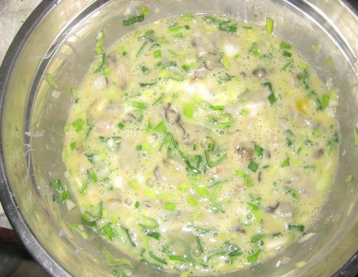 一直以来我都比较重视孩子缺钙的问题,而忽视了儿童缺锌的问题,上周去听了一堂妈妈课程才知道,宝宝缺锌不单只会引起断甲,还会导致生长发育缓慢,影响正常免疫功能,导致宝宝创伤后愈合能力下降、出现异食等问题,所以儿童缺锌也是要引起家长的重视的,那么如果家中有缺锌的宝贝,家长应该做些什么呢?到底宝宝缺锌可以吃什么?今天就跟大家分享一个补锌的小方法。 牡蛎补锌大家都知道,可是牡蛎吃起来味道怪怪的,有的孩子并不接受,包括我家宝贝也是如此,那么最近学了一个新的做法——牡蛎鸡蛋饼,大家听起来是不是还不错,废话少说,先来看一下整个过程吧! 整个过程很详细的哦! 原材料其实很简单,只要有牡蛎,小蒜苗,地瓜粉、鸡蛋就可以了。 这个是洗好的海蛎 ![]() 这是小蒜苗,要切得小一点 ![]() 这个地瓜粉 ![]() 先倒入少量约30克的地瓜粉,不用再放水,因为海蛎里面就会有很多的水份 ![]() 先扮均匀,真到地瓜粉全部融化 ![]() 再放入小蒜苗 ![]() 再搅拌均匀 ![]() 将鸡蛋搅拌均匀 ![]() 将2/3蛋液倒入,放适量的盐巴,依个人口位,一起再搅拌一下。 ![]() 搅拌好的效果图 ![]() 现在开妈开锅了,先倒入适量的食用油,烧至七八成热,再倒刚才准备好的材料 ![]() 留下来的1/3蛋液,等一下有用哦 ![]() 等饼差不多六成熟的时候,再将剩下的蛋液沿着饼的周围一圈倒进去 ![]() 好美味的一道海蛎鸡蛋饼就这样出炉了。