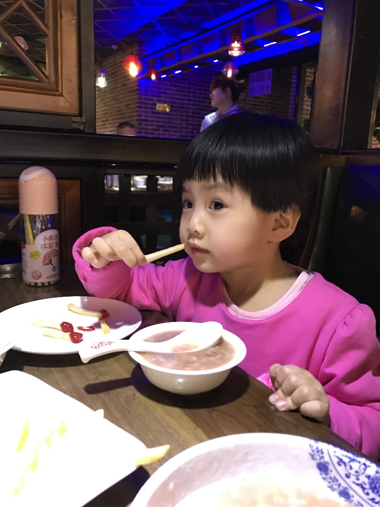 林徽因是我非常喜欢的女子,在我的心目中,她就如同一首诗歌一样存在。同样作为母亲,我们对于孩子的存在都是非常感激的。正如她的诗歌中写的一样:你是一树一树的花开,是燕。在梁间呢喃,——你是爱,是暖,是希望,你是人间的四月天! 四月天,是一个非常美丽的季节,草长莺飞、花团锦簇。四月天,是非常舒服的季节,春江水暖鸭先知。四月天,是让一家人踏青的好时节,绿遍山原白满川。不错的,四月是一年四季中不冷不热的季节,而且处处一片生机勃勃的景象,给人以一种积极向上的感觉。 4月的第一个周末,春光明媚,阳光暖暖,宝爸带着我们娘俩外出放风去了。最近,我们这里每逢周末就会阴天天气,这个周末真是难得一个好天气呢,真的不能错过哦。我们家宝宝听说我们要带着她外出去玩,开心地不得了呢。我非常喜欢这种一家三口一起外出的时刻了,心里非常的舒畅呢。 ![]() 宝爸带我们直接来了一家大型吃喝玩乐于一体的商场,宝爸带着我们就去了一家体育用品卖店。宝爸说,最近你照顾孩子太辛苦了,今天给你买一套衣服和一双鞋子犒劳你一下。说完,他就给我拿起一双鞋子让我试穿。我刚穿上鞋子,他就让服务员给我拿了一件休闲外套试穿。服务员说搭配外套的时候,里面最好穿一件白色的体恤衫比较好看。于是,服务员给我拿了一件白色的体恤衫和一件休闲外套让我试穿。我试穿的时候,宝宝也跟着我一起进入了试衣间,宝贝看到我试穿衣服,开心的不得了,她说妈妈穿上新衣服真好看。我走出试衣间,宝爸、宝宝、服务员都说我这一套穿着好看,宝爸就直接让服务员开了票去买单了。宝爸买完单回来告诉我:“你猜,一共多少钱?”我正在思索的时候,宝爸说:“正好是你的生日,今天真该你买衣服呢。哈哈。” ![]() 宝爸给我买完衣服,宝爸就带着我们去逛超市了。来到超市,我们家宝宝看到琳琅满目的商品,自己就去挑选她喜欢的商品了。宝宝自己买了一套画笔,虽然家里有很多套了,还是入手了。宝宝看到了饼干说:“妈妈,我不买饼干,我只是看看。”哈哈,真是觉悟非常高的孩子呢。 ![]() ![]() ![]() 我们在超市买完东西之后,宝爸看了看时间,差不多到午饭点了。我们就直接去了超市三楼的休闲区,宝爸找了一家中餐厅,我们中午就在这里就餐。我们家宝爸让我和宝宝先点菜,还没有等我准备点呢,我们家宝宝已经拿着笔开始圈圈点点起来了。瞧!我们家宝宝点菜是不是有模有样? ![]() ![]() ![]() 我和我们家宝宝点了一会儿,不知道吃什么好。最后,把这么重要的任务还是交给宝爸吧。我们家宝爸点菜还是遵循宝宝和他的口味的。给宝宝点了一份炸鸡翅搭配薯条番茄酱,自己点了烤肉,给我点了一份蒜蓉西兰花,还点了一份烤蛤蜊,点了3份米饭,一大碗八宝粥,一罐雪碧。说实话,这些饭菜,我们一家三口能吃完一半就差不多了。 ![]() 我们把点好的菜单提供给了服务员,在等待上菜的间隙,我和宝贝儿用手机玩起了自拍,瞧这孩子是有多么开心啊~ ![]() ![]() 观赏一下自己刚入手的画笔,喝点温开水,向远处傻愣一会儿,我们的饭菜就陆续摆上餐桌了。 ![]() ![]() ![]() ![]() 我们家宝宝还是比较喜欢吃薯条蘸番茄酱的,自己把一根根薯条蘸好番茄酱放在餐盘里面,真的是太有意思了。 ![]() 接下来,我们家宝宝开启小吃货模式,先吃了一会儿薯条,之后就自己一个手按着鸡翅啃,一个手拿着勺子喝八宝粥,我们家宝宝吃的那个香啊。为娘负责为宝宝擦擦嘴巴,扶扶粥碗。等我们家宝宝吃的差不多饱的时候,我才开始吃午饭。 ![]() 不一会儿,宝爸和宝宝都吃饱了,宝爸带着宝宝外出玩一会儿,让我专心吃饭。等我快吃饱的时候,这爷俩回到就餐位置了。我们家宝宝为了一个粉色气球,让宝爸买了一杯奥利奥冰淇淋。哈哈~最后,这杯奥利奥冰淇淋就是妈妈的饭后冷饮了。宝宝叮嘱妈妈:妈妈,你吃完冰淇淋之后,记得把粉色的杯子还给我哦。哈哈~我们家的小小杯子控小朋友。 ![]() 我们吃饱喝足后离开了这家餐厅,我们和宝宝在商场里逛了一会儿,看把我们家宝宝开心的呢。 ![]() 我们从商场离开后,就带着宝宝去了公园,来到公园里面,小风儿吹着,空气清新,花儿绽放,瞬间我们家宝宝就撒欢儿了。我们在公园里玩了一会儿,就带着宝宝回家了。 ![]() 回到小区后,我们家宝宝最爱她的粉色气球了,一路上自己拿着,谁也不让碰。事实证明,小孩子的世界我们真的不明白。但是,我知道,宝宝非常喜欢我们一家三口这样在一起吃吃喝喝玩玩乐乐。 ![]() 大周末,大晴天,带上孩子,一起开启属于我们的四月天亲子时刻吧!