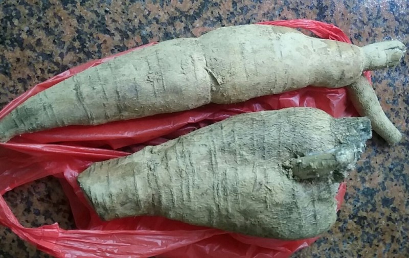 粉葛是广东人非常熟悉的煲汤食材,其性凉,味甘、辛,富含蛋白质、氨基酸及多种微量元素,具有透疹止泻、除烦止渴、润肠、清热等功效。用粉葛配骨头或者肉类煲汤,味道清甜可口;用粉葛煲冰糖,清热解毒,生津止渴。不过,由于饮食习惯的问题,我从来没用过粉葛来煲过糖水,我一般都是用它来煲骨头汤的,这样的汤水不但清热除烦,而且鲜甜可口,令人越喝越想喝。 考虑到有的亲可能没见过粉葛,也没吃过粉葛,所以跟大家看一下粉葛树是长啥样的。看,下面这些长得郁郁葱葱的藤蔓就是粉葛的树了,它们都是生长在我们家屋后的粉葛,都是野生的,平时没人管理它们的,都是想喝粉葛汤的时候才到屋后尝试着挖来吃的。 ![]() 粉葛的叶子虽然长得满地都是,但粉葛并不是那么容易挖的,也不一定每次都能挖到粉葛。 ![]() 这是粉葛的根部,扎得蛮深蛮紧的,生命力特别的旺盛,所以我只挖了一会儿就吃不消了,一条粉葛也没挖到,然后老妈就把老爸找来帮忙了。 ![]() 经过一番折腾,老爸总算挖到一条比较大的粉葛了,看,这就是刚挖出来的粉葛了,非常的新鲜,肉质也是比较厚的。 ![]() 而下面这两条粉葛却是我从菜市场那买来的,由于不是刚挖起来的,所以粉葛的皮的颜色有所不同。