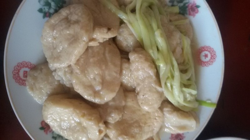 最后这盘美食是我从来没吃的一道菜——韭黄鱼腐。在我们乡下,鱼腐可是我们的传统美食,它寓意着团团圆圆,所以基本上喜庆日子或聚会时都会有这道美食的。一般来讲,鱼腐都会配青菜的,比如鱼腐西蓝花,番茄鱼腐,鱼腐大白菜等。可韭黄鱼腐俺还是第一次吃,感觉特别的好吃,不论是爽滑可口的鱼腐,还是比较少吃的韭黄,都入口留香,回味无穷。