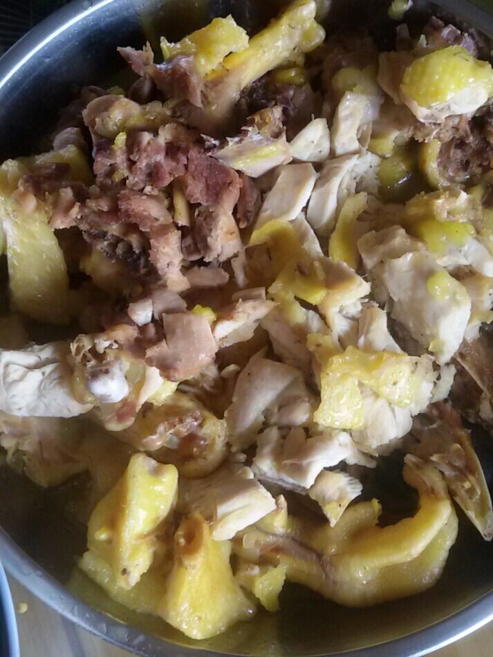 因为乡下地方大,院子大,所以很多人都会在家里养几只鸡的,就算是养够自己吃也好,我们家也不例外。每次回乡下时,我们都基本上有土鸡吃的,这次也不例外。看,下面这盘就是土鸡了,肉质细嫩,香而不腻,可好吃了,就连平时不怎么喜欢吃鸡肉的小不点也连续啃了好几块呢。虽然鸡肉好吃,但我却不太喜欢吃全是没有骨头的鸡肉的,我一般喜欢吃那些带骨头的鸡肉的,比如鸡翅膀,鸡脚等,总感觉吃些带骨头的鸡肉会特别的好吃,而且会越嚼越香的。