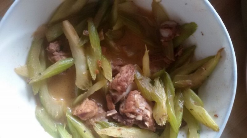 这是芹菜焖土鸭,话说我还是第一次看到这样搭配的,以前只是见过别人来鸭杂鸡杂或者猪杂来炒芹菜而已。虽然这种吃法有点奇怪,但味道还是可以的,尤其是芹菜,吃起来特别的美味,或许是因为它吸取了土鸭精华的缘故吧。
