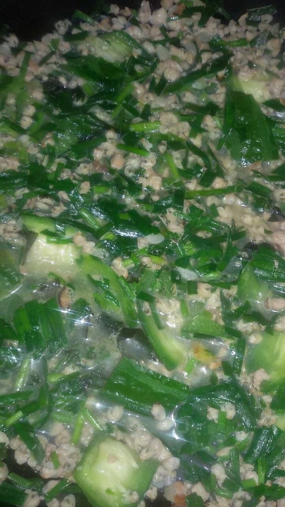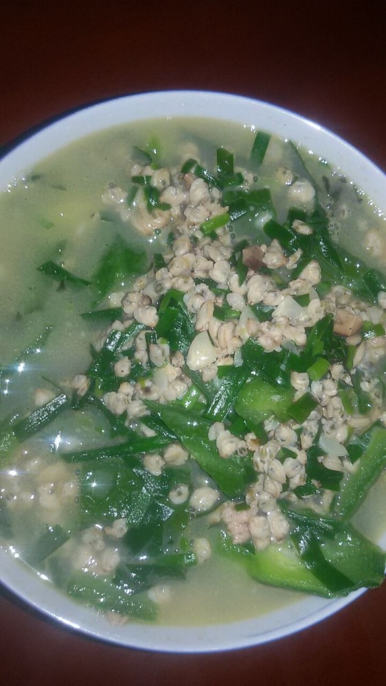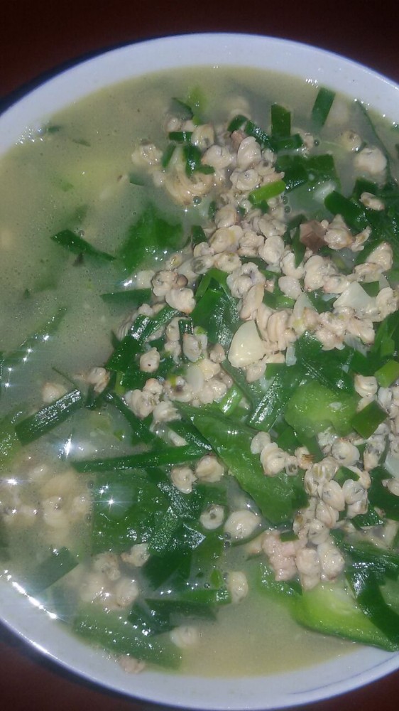 因为这次买的蚬肉比较多,而且只有我们母子俩吃,所以这次我就没有加鸡蛋进去一起煮,只是用韭菜和丝瓜来煮蚬肉而已。虽然这做法比较简单,但这韭菜丝瓜蚬肉汤却是特别的鲜甜,小不点可喜欢喝了,喝了一小碗又一小碗。下面跟大家说一下这韭菜蚬肉汤的做法。