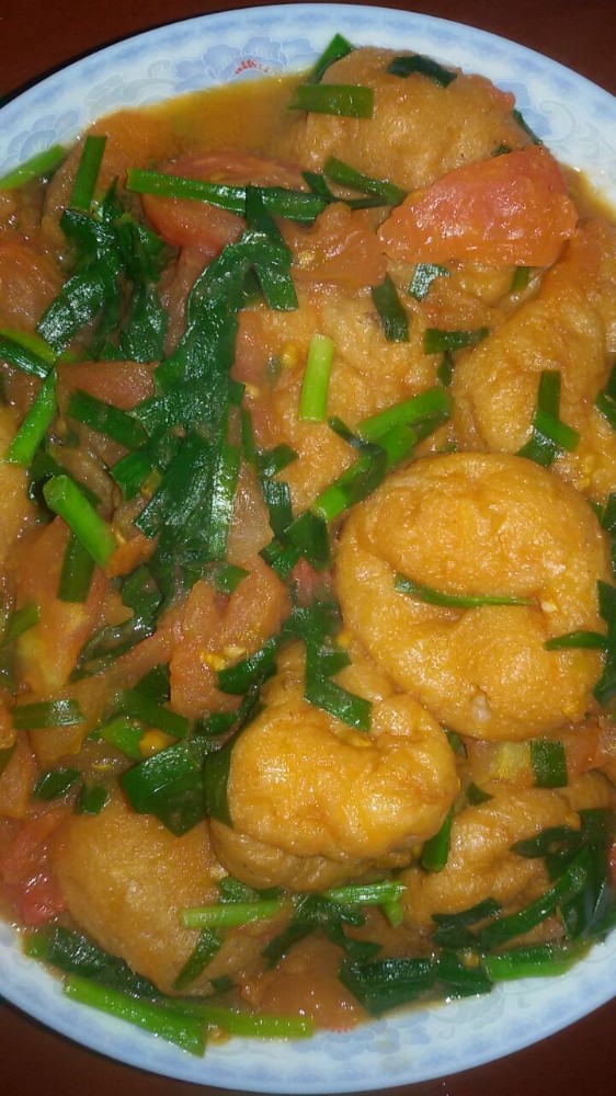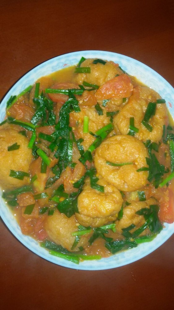 因为小不点一直嚷嚷着要吃鱼腐,加上他很喜欢吃西红杮,所以我就做了一个比较开胃的西红杮韭菜鱼腐。虽然卖相不怎么好,但小不点却很喜欢吃,一大半的鱼腐都是他干掉的呢。考虑到有些人不太会做鱼腐,所以下面跟大家简单说一下这道菜的做法。 材料准备:西红杮三只、鱼腐8只、韭菜适量、葱末适量 步骤: 1、鱼腐先用开水浸泡15分钟,然后把水倒掉(目的是去一下油),备用; 2、西红杮洗净,去皮,切块备用; 3、韭菜和葱叶洗净,切段,备用; 4、锅洗净,把适量的清水放到锅里煮,水煮开后放入浸泡过的鱼腐煮十分钟(不用盖锅盖); 5、调生粉水:由食盐、生粉、酱油、少量白糖和水组成; 6、倒入切好的西红杮稍煮,然后再倒入生粉水再次煮开,然后再入韭菜段,两分钟左右关火盛出食用。