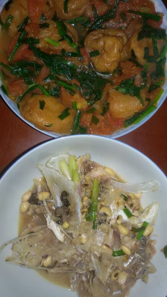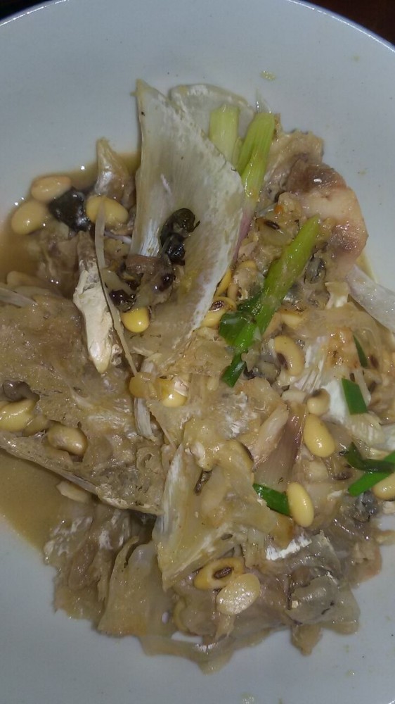 因为鱼头是我们的最爱,煲过汤的鱼头也一样,所以我就把鱼头都从汤里捞出来,然后加些调料炒一下,炒入味了然后就可以食用了。虽然鱼头里面没什么肉,但由于小不点很喜欢吃鱼,所以我只好把鱼脑和没有鱼刺的肉都给了小不点吃。虽然我并未打算吃煲过的这些黄豆,但我尝了几颗,感觉粉粉的,还蛮好吃的。不过,由于我当时已经吃饱喝足了,所以我也吃不下多少了。