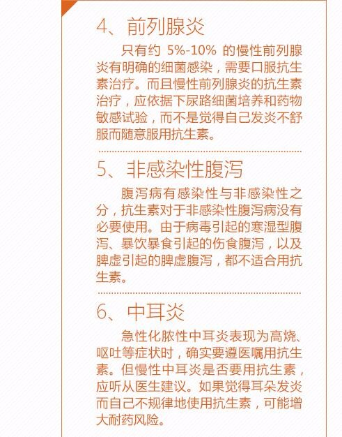 ①霉素:如阿奇霉素、克林霉素;②西林:如阿莫西林、氨苄西林;③头孢:如头孢拉定、头孢地尼;④磺胺:如磺胺嘧啶、磺胺米隆;⑤环素:如四环素、地美环素;⑥沙星:如诺氟沙星、氧氟沙星。