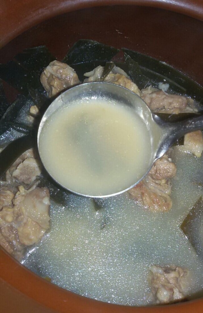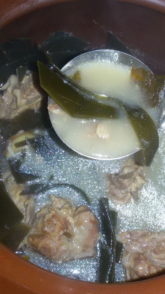 看,这就是我煲好的海带排骨头汤了,虽然做法简单,食材也不多,可汤水却非常的鲜甜可口,令人越喝越想喝,我们都特别喜欢喝,邻居朋友和她女儿也说很好喝。
