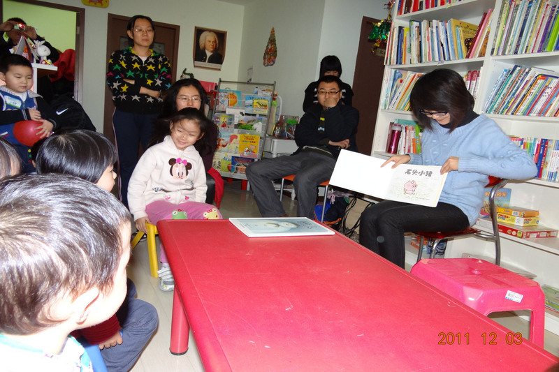 ,第二个到现场的。 奇奇绘本馆是在一个居民楼里,地方不太大,不过里面的图书可真不少,一点儿也不比成人的图书馆差,以前还真不知道有这样可以提供租书的地方,有时间我也给子博租些书看,真是省钱又省心! 啰嗦了半天,大家不要见怪,第一次发贴,我赶紧进入正题啊~~ 读书会开始啦,第一个环节是小朋友们自我介绍,拍汽球真的很吸引人,子博之前有些腼腆,结果看别的小朋友都踊跃的举手要求拍汽球,居然自己也主动举起手来,鼓励一下。 《石头小猪》的故事,嘟嘟妈真的很厉害,之前好像没安排好,嘟嘟妈是到现场才拿到的绘本,结果上来就开说,故事讲的有声有色,小朋友们在下面听的特别认真。 《颜色国的秘密》这套书真的很有意思,加上每位家长的精彩演绎,不光小朋友们爱听,连我都被吸引住啦,让我想起了小时爱看的动画片《巴巴爸爸》~~~ 后面其实还有听音乐传玩具,子博由于坐的时间比较久啦,加上旁边有他最喜欢的托马斯小火车,这个活动就没有参加,不过没关系,慢慢来吧~~ 最后,大家做了个小手工,那就是每个小朋友画一个雪人,子博太有创意啦,画了一个外星人雪人,嘻嘻,因为我实在是看不出来像个雪人,只好自我安慰说是外星人啦~~ 本作品未经作者许可不得转载,转载请征求作者意见。擅自转载使用,将保留追究其法律责任的权利! 评分记录