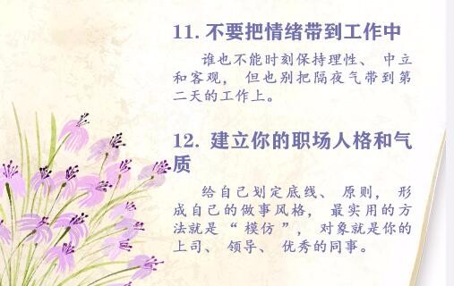 高标准做好小事,工作汇报有逻辑有重点,培养演讲技能,多一些举手之劳,及时反馈……20条为人处世的经验↓↓未曾见过一个早起、勤奋、开朗的人抱怨命运不公。沉下心来,踏踏实实做有价值的事,见证更好的自己!