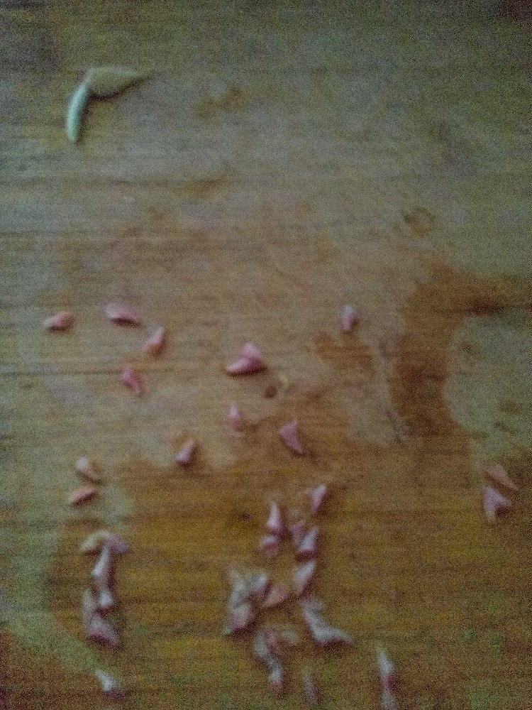 第一步就是去指甲了,这个看着简单的步骤,可是难为我了,我都不知道是怎么弄的,之前都是妈妈做饭,自己没有做过,实在是不知道该怎么下手,赶紧问了一下万能的网络,哈哈,有好几种说法呢,有的说反方向就可以掰断了,但是我用力也没有成功,还是不行,接着尝试第二种方法,一个个的用刀子剁掉,这个方法不错,就是赶紧鸡爪子买多了,因为一只鸡爪子那么多指头,这么多个鸡爪子,好多脚啊,这个去鸡爪子的指甲工作用了很久。全部切掉以后,用凉水冲了几遍,算是清洗了,接着把这些鸡爪子放进锅里,锅里加上凉水,开火煮起来。