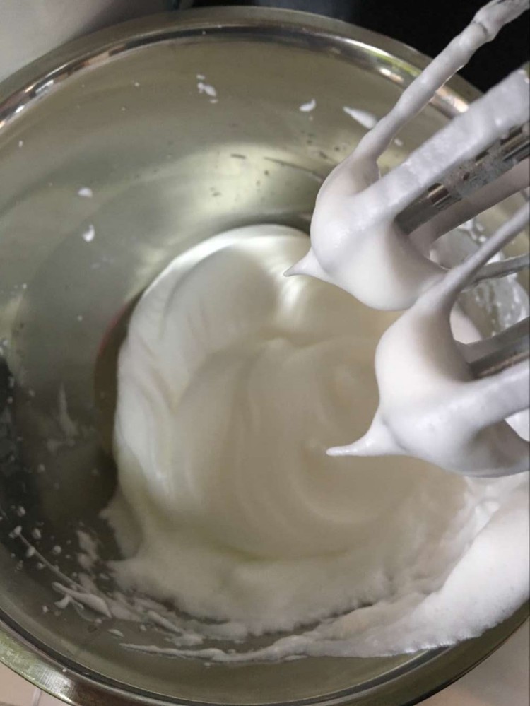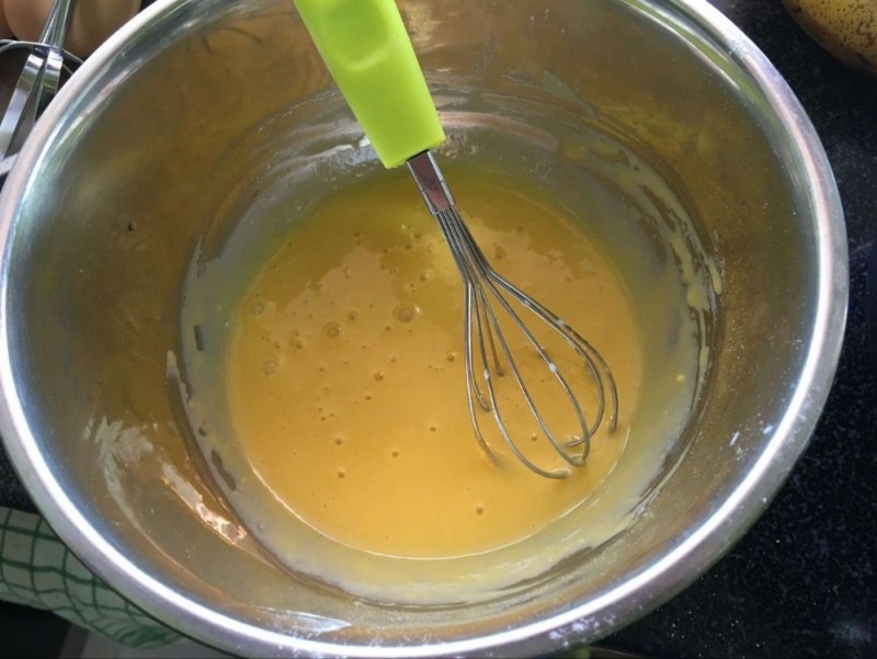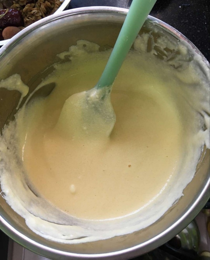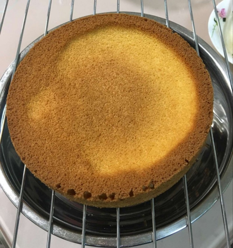 ![]() 有烘焙兴趣的人都知道戚风蛋糕,绝大多数裱花蛋糕都是由这款最基本的蛋糕裱花奶油制作而成。今天为各位美妈带来6寸戚风蛋糕的制作方法。工欲善其事必先利其器,在制作蛋糕之前,我们先要知道需要准备哪些东西。 需要准备的食材: 鸡蛋3个 白糖15g(放入蛋黄) 玉米油30g 低筋面粉50g 白糖30g(放入蛋清)牛奶25ml 需要准备的工具: 打蛋器、面粉筛、蛋黄分离器、硅胶刮刀、阳极模具6寸、烤箱 接下来就开始制作啦! 第一步:把蛋清蛋黄分离 ![]() 第二步:将白糖、玉米油、牛奶倒入蛋黄混合搅拌均匀,筛入低筋面粉,顺时针搅拌成蛋黄糊备用 ![]() ![]() 第三步:打发蛋白这一步很关键,蛋白打发至鱼眼泡状时加入三分之一白糖;继续打发至泡沫细腻加入三分之一白糖;当蛋白有清晰纹理,提起打蛋器蛋白出现尖角并下弯时倒入剩余三分之一的白糖;继续打发蛋白到硬性泡沫,所谓硬性泡沫就是提起打蛋器尖角变小并不会弯曲,亦或是将盆口朝下蛋白也不会掉下来的状态。 ![]() 第四步:此时预热烤箱上下火170度。因为我的烤箱内部是没有照明的,如果有照明会更加便于观察。 ![]() 第五步:用硅胶刮刀将打发好的蛋白取二分之一加入之前备好的蛋黄糊中,进行翻拌。这里有知识点哦,一定要用翻拌的方式,就是用硅胶刮刀从底部铲起蛋黄糊翻拌至蛋白上,反复进行这个动作使蛋黄糊与蛋白完美结合,一定不要随意搅拌哦。将剩余蛋白倒入面糊中,继续翻拌动作直至充分混合。 ![]() 第六步:将混合好的面糊倒入模具中,抹平表面后,端起模具在离桌面一点距离的上方摔下,以震出面糊内部气泡,这时便可将模具放入烤箱,170度,35分钟左右即可。 ![]() 第七步:烘烤结束后,取出模具立刻倒扣在冷却架上直至冷却脱模取出蛋糕。 ![]() 这时便大功告成了,松软可口的蛋糕入口如棉花糖般惹人陶醉。这是我第一次制作戚风蛋糕,有点小失败就是蛋糕中间出现塌陷状态,上网查了资料,也咨询了朋友,总结是烘烤的时间过长,我用的是上下火150度,45分钟,蛋糕表面出现焦糖颜色,但中间口感很好,所以大家制作的时候可以按照步骤里的温度和时间控制烘烤,那个温度和时间是朋友多次成功的实践结果。另外也有可能是我忘记倒扣冷却,使蛋糕表面遇冷过分收缩的缘故,大家制作的时候要仔细体会哦。 ![]() ![]() 热爱烘焙的生活是充满甜蜜的,看到孩子喜欢吃妈妈做的蛋糕,内心很欢喜,接下来还要学习玛格丽特饼干、蔓越莓饼干、慕斯等好多美味的制作,希望我的两个小朋友从此爱上妈妈的烘焙手艺,也希望越来越多的妈妈们加入到烘焙探讨中来! ![]() ![]() ![]() ![]() 本作品未经作者许可不得转载,转载请征求作者意见。擅自转载使用,将保留追究其法律责任的权利! 个性签名