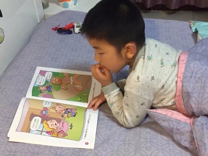 我家小朋友只会听说一些简单的英语,读这方面基本为零。虽然一个单词都不认识,但是小家伙还是非常认真,非常开心地和我一起看了一遍又一遍,我读一句他就跟着学一句,很是开心,学习英语的兴趣很浓。
