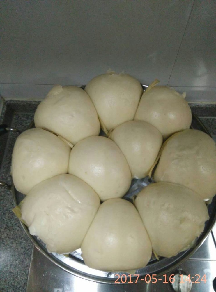 我很高兴啊但同时也担心自己做不好。因为以前上班时间比较紧张,早上很少吃饭,中午和晚上单位管饭,加上平时比较懒惰,所以我基本上不做饭,这么多年都是老公在默默无闻的一个人付出,想想他也挺不容易的,我这个做媳妇的没有尽职尽责的照顾他。好吧,说做就做。 今天我也要好好表现一下。首先我仔细回想了一下老妈在家是怎么做馒头的,思考了半天然后就按照这个步骤来,先把面从面盆里面都倒出来了,面案上提前铺一层白面,防止沾面。然后整体揉面,感觉揉的差不多了,弄成一个长条,切成16个小面团,沾上一层面,放进盆里。最后每个面团进行揉面,每个都要揉它60下,总共揉了两遍,感觉特别费力。最后感觉手都瘫痪了。 最后面团们都被我一一揉好了,成型后我把他们放在案板上,再醒醒,第一次揉好的,已经醒的差不多了,比最后一个做好的大很多,想想有时间差,只能从做好的最后一个馒头的时间算起,醒了大约25分钟吧。判断醒没醒好的标准时,拿在手里掂量一下是否感觉轻盈了,若是感觉还是跟石头一样沉重,那么好要再等一会儿。想想做馒头也是一种艺术,同样需要付出时间和耐心的,不然怎么能吃到称心如意的作品呢? 最后把它们一一放到蒸锅里,我把每个做好的馒头都垫上了玉米叶子,这样不会沾到锅梁上,而且味道会更香,开始蒸了,等水开了以后,看到冒水蒸气了,再蒸它15分钟,就出锅了。我的馒头做好了,好期待开锅的那一刻,最后我锅盖都拿不下来了,馒头做的太大了。都挤一块了,哈哈。。。。好开心啊。拿一个品尝了一下,好吃极了。自己做的就是好,心里美滋滋的,乐开了花。 ![]()