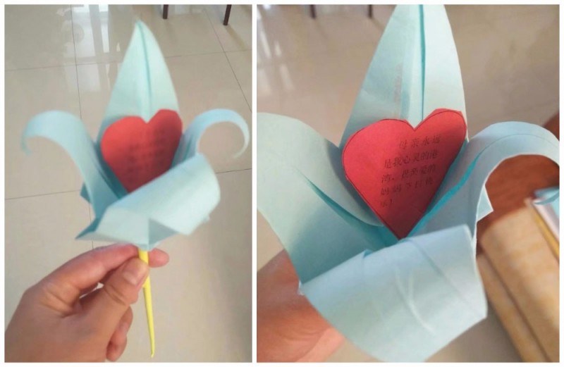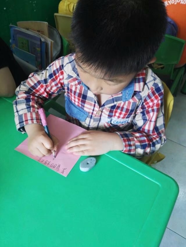 上周末刚好是母亲节,上周五下午去接小家伙的时候,一见到我小家伙就对我说:“祝妈妈母亲节快乐!”还送给我两个礼物,一个是由老师们协助完成的手工花朵,一个是小家伙为我写的信。