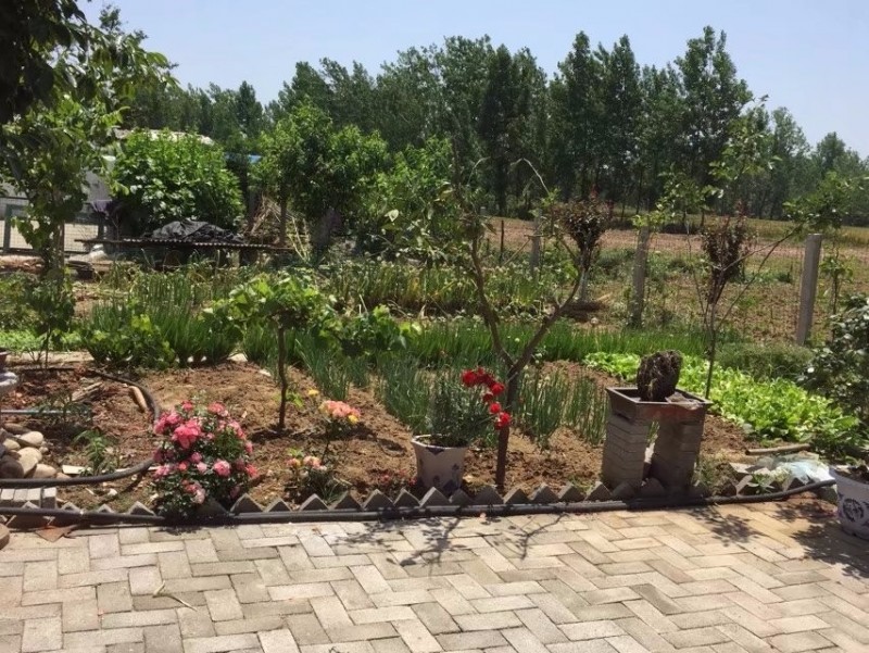 家里有很大的院子,种上各种的花,盛开的时候美丽极了,在种上蔬菜,到是完美。