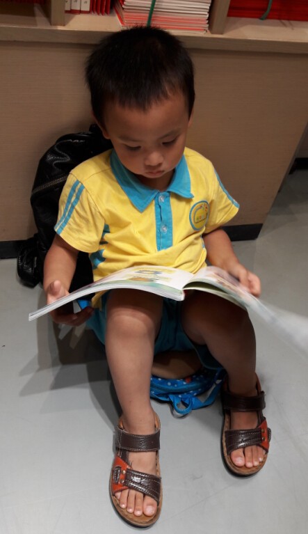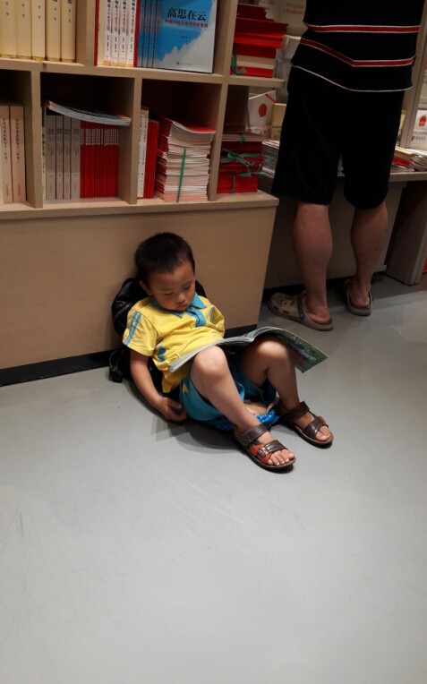 那天带他出去外面的时候,我第一次带着他来到了书城,我是想带着他来看看书的,不过书城这里没地方坐着看书的,大家都是坐在地上看书,后来我给他找了一个位置,坐下来看书,他刚开始的时候,自己在那里翻书,后来看着看着,就犯困了呢,不过如果那个时候,在玩的情况下,他一定是不会犯困的。不知不觉当中,竟然在那里睡着了呢。看他这样子,我都觉得好笑,看来这看书也是一种很好的催眠方式啊。