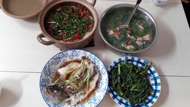 上周末的时候,他又做了一次腊味饭,这一次做得可真的是太美味了,非常成功啊,那饭粒也是一粒一粒的,真的是非常漂亮呢,他自己都觉得太成功了,赶紧说来拍一个照留念一下,哈哈,具体的做法,我也是不知道的,都是他一边在网上找资料,一边照着做的呢。还有几个菜,也都做得不错。反正这一餐啊,我是吃得饱饱得。