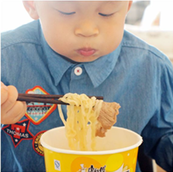 看宝宝吃面的样子,很有几分陶醉呢,不愧是甜馨家的乃爸给做的广告阿,说它是泡面界的小金人不是浪得虚名的,宝宝爱吃说明了一切。
