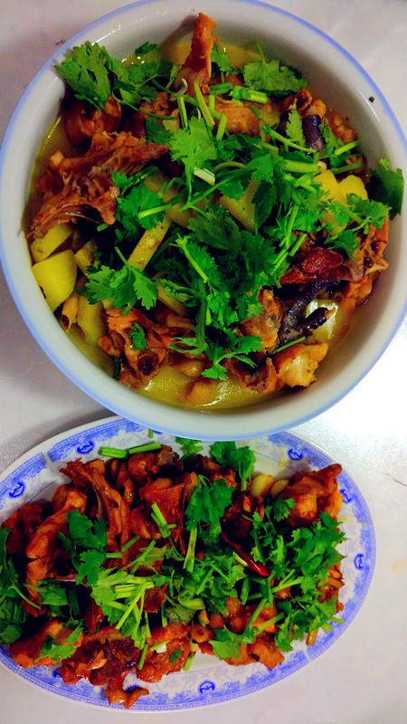 周末改善伙食,去杀了一只鸡回来做。老公一鸡两做,还在上边撒上了绿油油的香菜,看着就高大上。越来越有大厨的风范了,哈哈