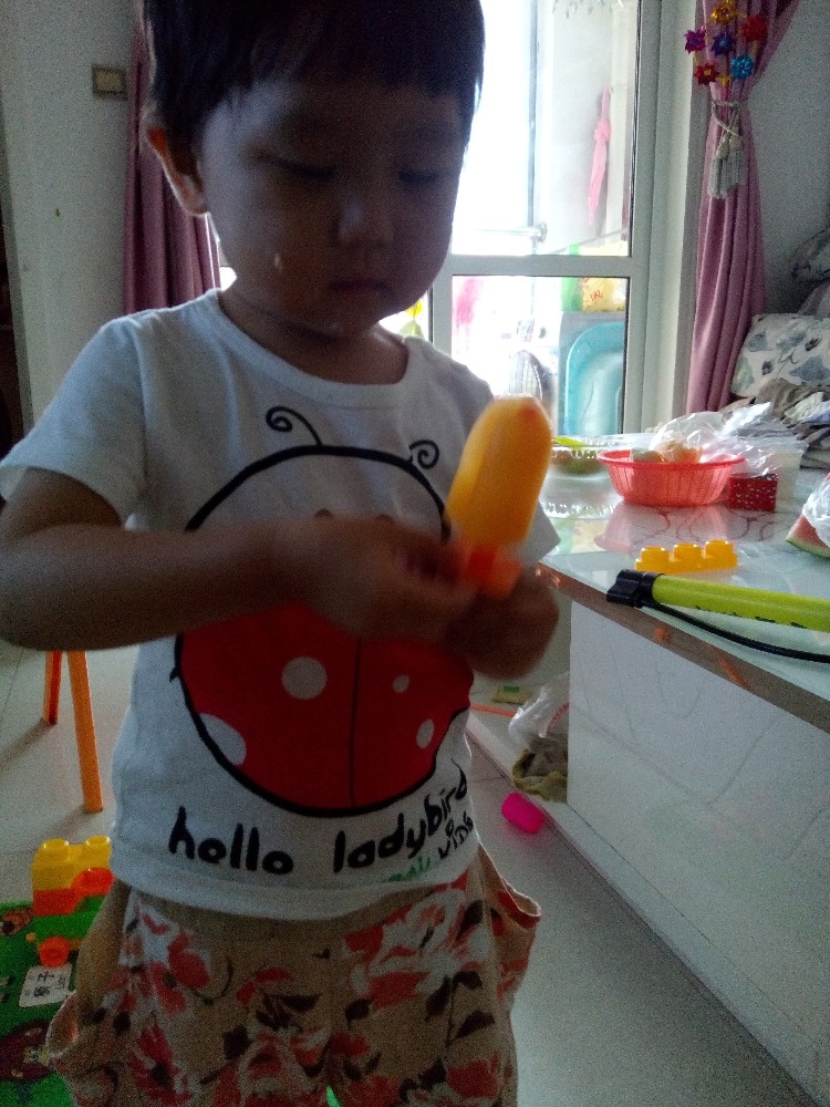 夏天来了,冰棍是少不了的角色,不过今年老公终于决定自己动手做冰棍了,相比往年的说来说去,这次真的是做出实际行动了,主要动力当然是来源于孩子了,我们家的孩子第一次正是吃雪糕是前几天,晚上老公带着去外面玩,在家里本来是哭闹呢,当时不记得是什么原因了,为了哄着宝宝不哭,老公就承诺带着孩子买雪糕去,孩子高兴的跟着爸爸出去了。 据说在附近的超市里买的第一个雪糕因为没有拿好掉了,老公带着宝宝又返回去买了一次,这次孩子拿的很用力,非常认真的看着自己的宝贝,吃起来一脸陶醉,第一次正式吃雪糕就是这样的,孩子吃的开心的不行,一路高兴的跑着回来的,还给我留了几口呢。