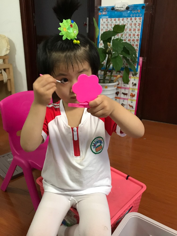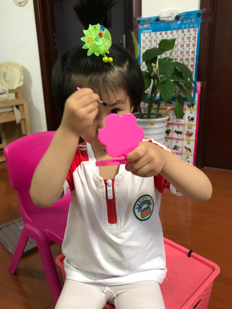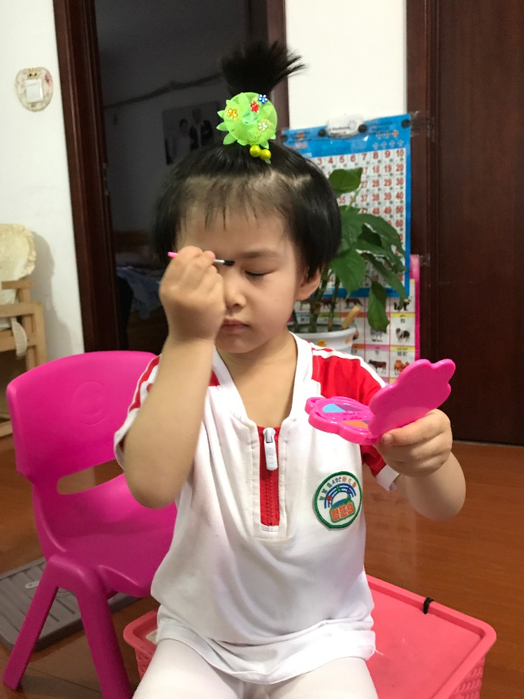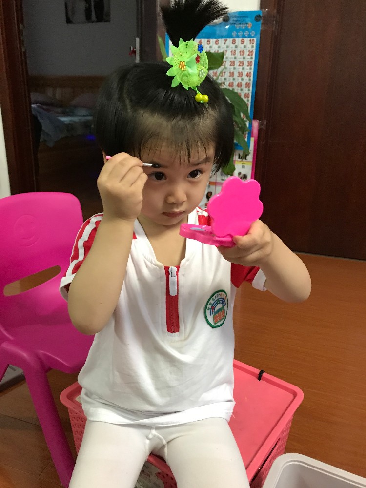前段时间,我们家宝宝在看凯利讲故事的时候,非常喜欢看一期关于小女生怎么样学习化妆的视频。当时,我们家宝宝看完这档节目之后就非常想拥有一套自己的化妆套装玩具。可是,在我看来,我们家宝宝还小,把心思放在化妆上面,感觉还是与她现在的年龄不太搭配呢。宝宝向我要这样的化妆套装玩具的时候,我就用转移注意力的方法给敷衍过去了。 昨天下班后,我们家宝宝非要带着我去超市买东西。可是,那家超市距离我们家有点远,我就带她去了楼下的母婴店。宝宝一进门就相中了这套妈妈化妆套装玩具。经过再三确认宝宝之后,她还是想要这套化妆玩具。好吧,果断给宝宝入手! 我们拿着宝宝化妆套装玩具回家后,这个孩子还没有等我教她怎么样打开这套玩具呢,她告诉我已经打开了,在没有我的任何帮助之下。不得不说,只要是孩子感兴趣的事情,她总能找到解决的小窍门呢,真的是不错哦! 宝宝自己把里面的各种化妆道具拿出来之后,先打开了玩具套装里面自带的化妆镜,她就拿着描眉的眉笔在自己的眉毛上开始化妆了。O(∩_∩)O哈哈~小家伙化妆的样子,看起来还是比较专业的呢。我看到她的小样子,逗的我哈哈大笑,立马掏出手机来给她拍视频、拍照片了,赶紧为她捕捉这一臭美动作! ![]() ![]() 我们家宝宝自己化眉毛呢,化完右面的眉毛之后,再来化左边的眉毛。 ![]() 这是在化眼线呢,哈哈! ![]() 化完眉毛之后,又开始化鼻梁了。这孩子化妆的样子,真的是有模有样啊,看起来萌哒哒的呢。 如果我们家宝宝照这个速度发展下去,以后出门的时候,肯定是一个不化妆不出门的人了。O(∩_∩)O哈哈~平时,我也不在当着宝宝的面化妆,她咋这样臭美呢,嘿嘿~ 本作品未经作者许可不得转载,转载请征求作者意见。擅自转载使用,将保留追究其法律责任的权利!