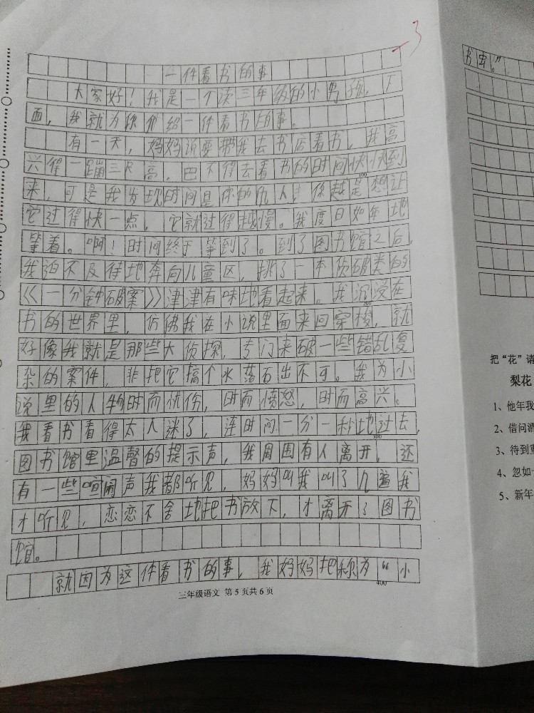在紧张的期待下,熙熙三年级下学期的期末成绩终于公布了。中午接熙熙放学的时候,我就已经知道他三科的成绩是多少了。不过试卷就要等下午放学才能看到。熙熙的数学得了98.5分,英语得了96.5分,而语文是三科考得最差的,只得了89分。本来以为熙熙考得这么低的分,一定是作文没有写好扣分多。没想到这次作文只扣了三分,他的作文分比我预料中高了很多。