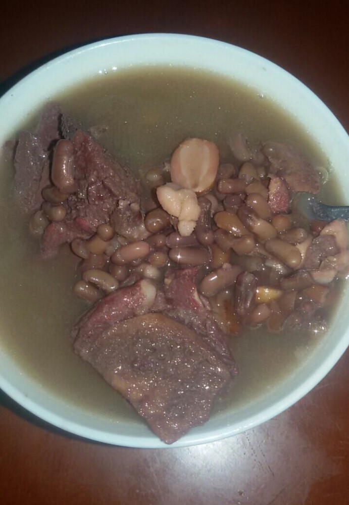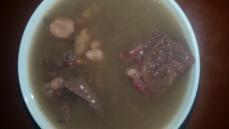 看,这就是我煲的莲子赤小豆猪骨汤了,虽然其卖相不怎么样,但味道却是很不错的,令人越喝越想喝。平时比较挑剔的小不点这次也喝了不少呢。下面跟大家介绍一下这汤的做法: 材料准备: 莲子50克、赤小豆60克、猪骨500克、生姜三片、陈皮一小块 步骤: 1、莲子、赤小豆洗净,提前浸泡一个小时左右,然后捞出备用: 2、陈皮、生姜洗净,备用; 3、猪骨斩块、洗净,然后放开水内稍煮一下(目的是去血水和杂质),捞出备用; 4、砂锅洗净,一次性加足水大火煮,水煮开后改小火煮两个小时; 5、关火调入食盐饮用。