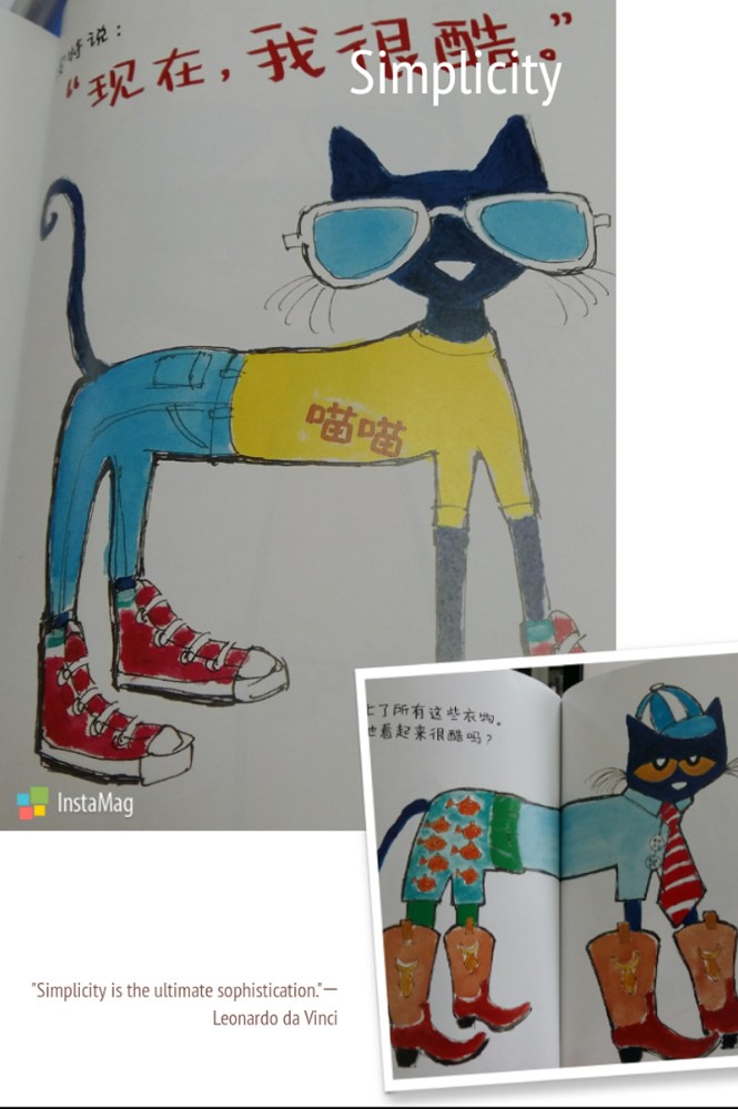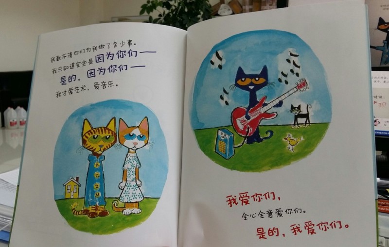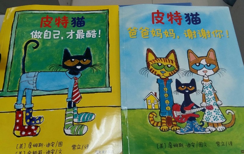 《皮特猫》全六册,作者詹姆斯.迪安,杰出的艺术家造就的皮特猫形象让我想起了《我的名字叫鲍勃》这本书,我收到其中的《做自己》《爸爸妈妈谢谢你》居绘本类第一名,同样荣获畅销,深受孩子们喜爱。书中的文字创作,为皮特猫和他的家人、朋友带来了动人的故事,儿子拿到手就被封面明亮的色彩所吸引,颇具纯真、童趣的独特风格让他深深喜欢上了这只优雅的小猫。 1、《皮特猫:爸爸妈妈,谢谢你!》讲述的是皮特猫每天直床什么也不用担心,爸爸妈妈早已经准备了早餐、收拾好书包、陪体育锻炼,接送学习,渐渐的从父母为他做的事情中感受到了浓浓疼爱也想为家人做些事情,可是它会做的事情不多,最后他用心地创作了一首歌作为回馈。故事告诉我们父母不需要太多的回报,他们不在乎你做了什么,而是你要发自内心地去做,只要你认真用心,父母得到的是精神上足够的欣慰。无论是在家里还是学校都必须跟他人建立良好的互动、将心比心的对待他人很重要。 2、《皮特猫:做自己才最酷》皮特的妈妈、哥哥、朋友都热心的建议他穿什么颜色的衣服,戴什么样式的帽子,打什么图案的领带,皮特猫一一接受,可看起来却很怪异,他决定重新换上自己喜欢的衣服,反而酷极了。故事告诉我们不能人家说什么,你就做什么,勉强自己去接受别人的建议,不但开心不起来反而发现没了主见,随声附和。我们要依照自己的喜爱,培养创造力,将自己的风格展现出来,不人云亦云,诚实的面对自己内心,你会变得更加真实。