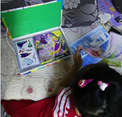 果然不负众望,收到盒子,女儿就把盒子360°无死角的打量了一番,米奇、麦坤都是迪士尼动画里的任务,粉粉的水晶扣,更是爱上加爱。 玩之百宝:打开盒子,全新的体验即将开始,盒子分为迪斯尼动画中英文绘本+大小写英文字母贴片+数字贴片+符号贴片+拼图贴片+2张游戏背景+6张动画背景+N张动画人物贴片;不知道你有没有被这么多部件惊到,我是被惊到了;真不愧是百宝盒。