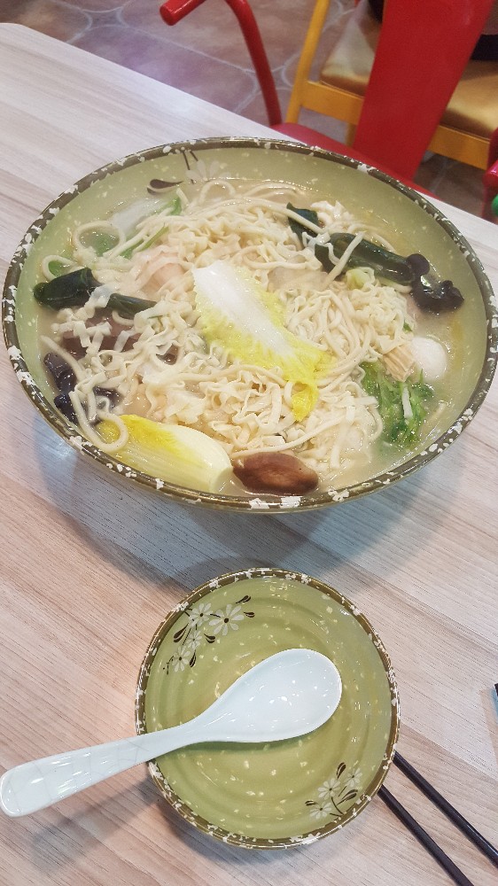 虽然一晚上我们都已经在卖力的吃了,但是这一大碗实在是大的要命,无论如何我们还是没有吃上啊,老公抿着嘴说:上次我们点了二十几块钱的,这次竟然是36块钱的,我一想也吃不了!哈哈,早知道吃不了还没玩没了的往里放呢,我喜欢的是粉丝,蔬菜之类的,面可不能吃太多,老公跟我相反 ,所以两个人齐心合力做了这样的一大碗啊!下次再来吃就有经验了哦!