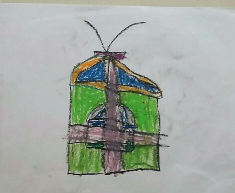 第一眼看到这幅画的时候,我还以为小家伙画的是一间小房子呢,想不到小不点却告诉我这是一份礼物来的。外面还系着彩带呢。