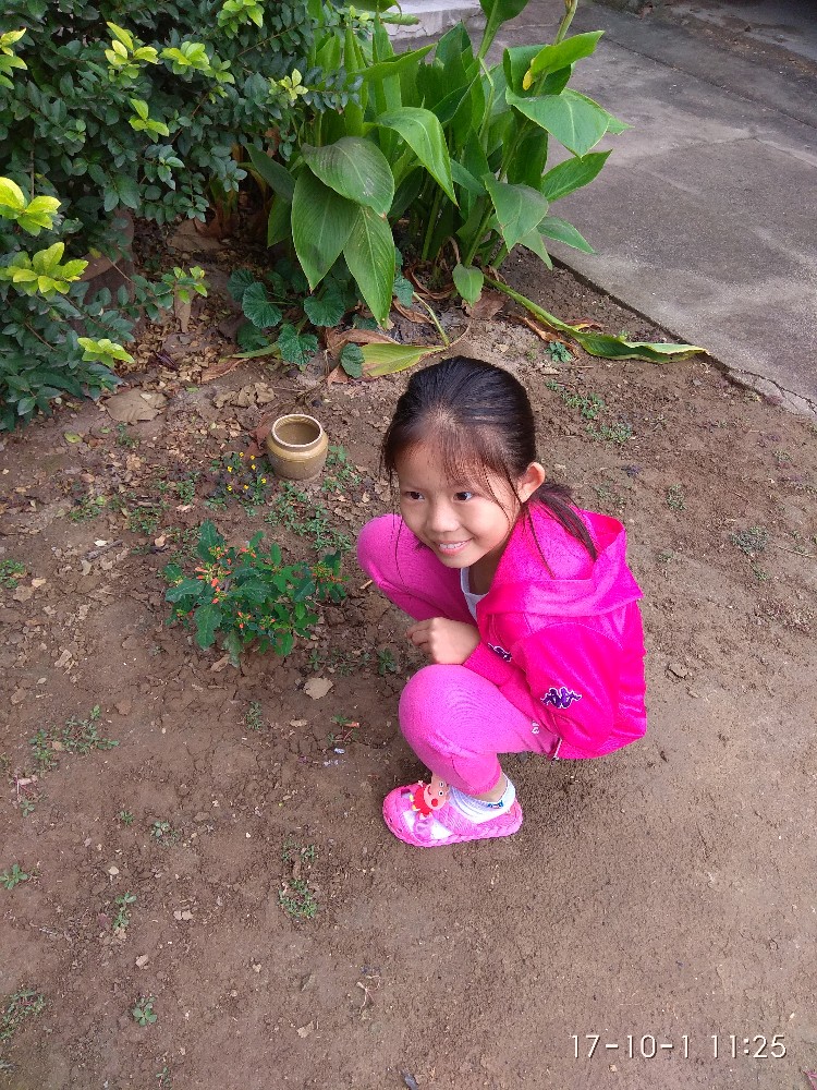 妞妞的姥爷很会养植物,因此养的花都很好,今天妞妞在姥爷的小花园里玩得好开心,还帮姥爷把一个植物的叶子上的土都擦干净了,很幸运的是还有一只肥肥的螳螂出现在花园里呢!