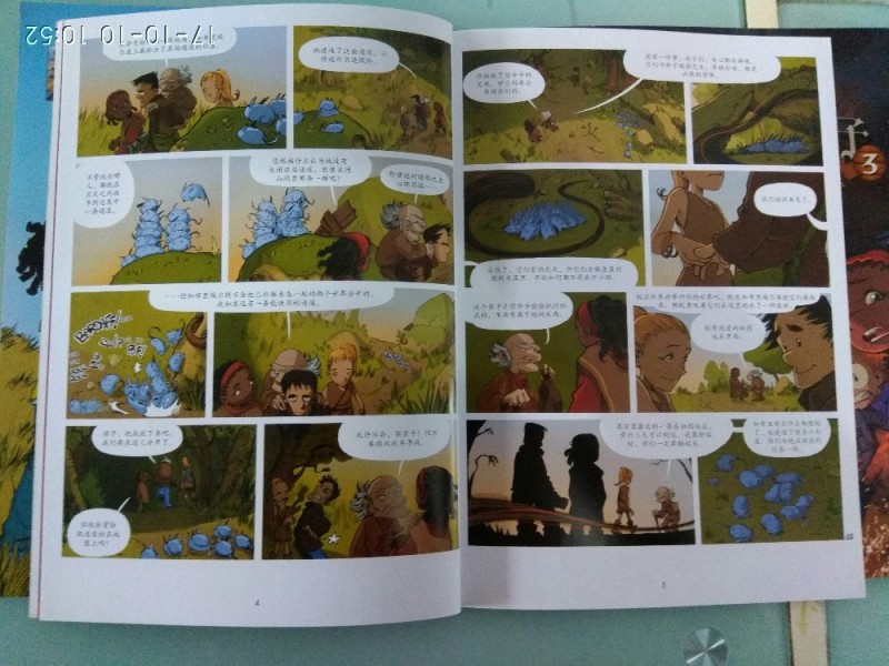 ![]() ![]() 《异世界的孩子》,是风靡法国的少年奇幻冒险漫画。这部探险类的连环画故事,是讲述了四名少年在另一个世界的奇遇。三个小男孩,马克斯,诺埃,泰奥,在一个公墓边玩耍。这个时候正在举行的是一位老人的葬礼。这位老人是一个奇怪的人,大家叫他加布老爹。参加葬礼的丽贝卡是加布老爹的孙女。她觉得参加葬礼很无聊,所以就去和三个小男孩一起玩。他们一起来到加布老爹的房子里。在这里发现了一些奇怪诡异的事情。虽然他们很快就分开啦,但是好奇的心促使孩子们又重新走到了一起。 ![]() ![]() 他们在加布老爹的房子里发现了一个时光机器。这个神奇的时光机器,带领他们来到了另一个次元的世界。在那里,他们遇见了骑龙的少女,还遇到了很多奇怪的动物和植物。在这个世界里,有一些暗影使者,这些暗影和它的主人不停地袭击他们,他们想要毁灭这个世界。 在这个世界中,他们遇到了帮助他们的少女,也遇到了很多好心人。在书中,有些地方埋有伏笔。比如说,在一个很原始的部落里,那些人供奉的神像竟然是和丽贝卡一样的。而丽贝卡小时候也有一些模糊的记忆,像是梦幻一样,不是特别清晰。 ![]() ![]() 四位少年靠着别人的帮助和自己的勇气,还有智慧,一起经历了这段奇遇,最终回到了家中。因为那个世界的经历让他们更加珍惜现在的生活。 书中的有些内容还是值得我们深思的。比如说马克斯的妈妈是一个独自抚养孩子的妈妈。她对待孩子的粗暴态度与其他的父母形成了鲜明的对比。虽然她也一样爱孩子,但是她表达出来的方式,却让人难以接受。还有书中的丽贝卡的父母对待加布老爹的遗物所做的处理。对于一个人来说,他的书籍和他的太多财物里面都有他自己的灵魂,而一个人死去以后,他所拥有的东西对其他人来说,只不过是废品。这真让我觉得可惜,也觉得我们对于传承的东西不够重视。 ![]() ![]() 我们都希望自己的孩子能多学习书本上的知识,但是探险勇气是和智慧并存的。我们的经历也能告诉我们很多的道理。一个经历过失去家人的孩子是不愿意让别的孩子也经受他的挫折和失败感的。这样的同理心和这样敏感的内心,充满爱的内心,也是我们需要孩子在成长中获得的。 ![]() ![]() ![]() 期待这一系列的漫画能够更快更好的出息,我们期待新的内容。 本作品未经作者许可不得转载,转载请征求作者意见。擅自转载使用,将保留追究其法律责任的权利! 个性签名