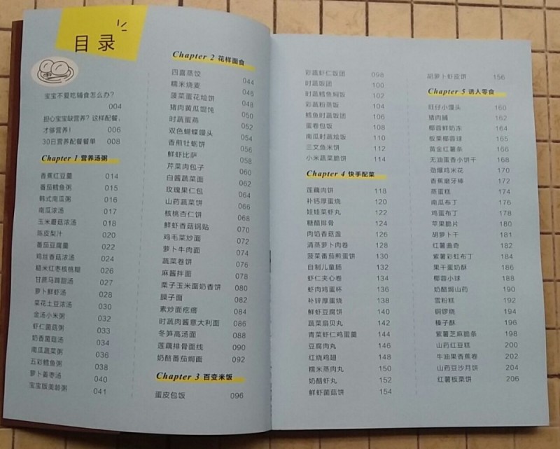 非常感谢@北京科学技术出版社@宝宝地带提供的试读机会,让我有幸读到这么精彩的书!感恩! 一直以来,小不点都是比较挑食的,而且吃饭的速度不是一般的慢,令我们头疼不已。所以,当我在宝宝地带上看到有小思妈妈写的《因为爱,做辅食》这书时,我就果断地申请了,为的就是想向小思妈妈学习做孩子喜欢吃的美食,让孩子爱上吃饭。 虽然小不点现在差不多有五岁了,但由于他一直都比较挑食,所以每次做饭时我都十分的头疼,更担心自己做的食物不合小家伙的胃口。不过,读完小思妈妈写的这本书以后,我似乎找到了救命稻草,也照着书上写的食谱做了几道美食,结果小不点竟然很喜欢吃,吃完后还嚷嚷着妈妈继续做又好看又好吃的美食给他吃,就像是书上的那些图片那样好看和好吃。 实话说,我挺喜欢这本书的,不仅仅它印刷精美,图片诱人,文字通俗易懂,操作简单实用,更重要的是它让我学会了做孩子喜欢吃的美食,让孩子吃饭香香、营养均衡、身体棒棒! 看,这就是本书的目录了,内容比较多,而且一目了然,非常方便读者查阅和学习。另外,编者非常的细心,把书的内容分为五部分来讲,分别是营养汤粥、花样面食、百变米饭、快手配菜和诱人零食。这样既方便查阅,又能让家长根据孩子的喜好来选择,一举几得呢!