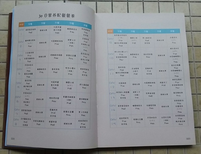这是小思妈妈精心为宝宝设计的“30日营养配套餐单”,我仔细看了看,除了水果以外,竟然没有重复的食谱,而且这些辅食下面都标注了页码,也就是说,翻到指定的页码就可以学习到该辅食的做法了,非常的适合新手妈妈和不懂做辅食的家长学习呢。