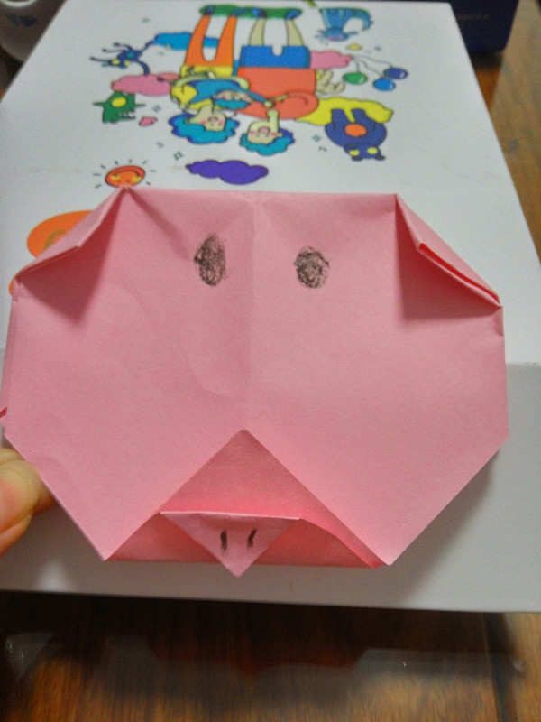 折纸也是小皮球这段时间特别喜欢的游戏,上个月教师节的时候她还做了三张贺卡送给老师呢。刚好下一个就翻到用折纸做小猪这页,家里也有彩纸,那就动手吧。看起来好像也不太难,但也能挺锻炼孩子的。上个星期天我还跟小皮球一起用纸筒芯做了只猫头鹰呢。