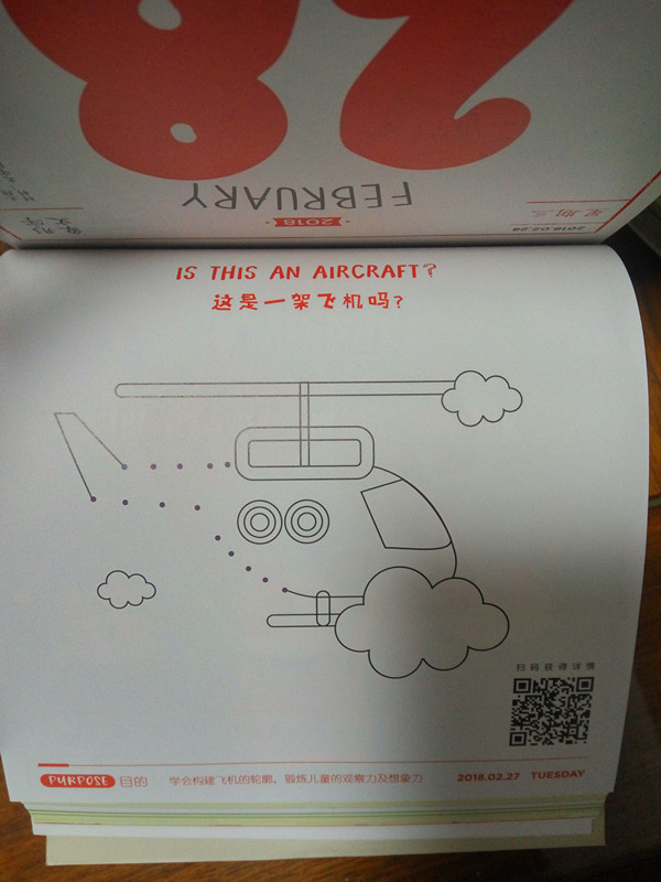很开心能得到这个亲子日历的试用,刚拿到包裹的时候沉甸甸的,我都不知道是什么东西,回家拆开之后才发现是这么漂亮的日历。你可别以为这只是本普通的日历哦,里面包含的内容可丰富了,亲子游戏,科学试验,知识技能,音乐绘画,英语启蒙,应有尽有,只有你想不到,没有它做不到。而且最吸引我的是,它不单单是看书这么无聊,人家还有二维码扫描,看中哪个只要扫一扫就能看到详细的视频教程,够新颖吧?唯一让我觉得可惜的是,因为日历太厚的缘故,要是想欣赏精彩内页的话,就得一张一张的撕下来,这么精美的日历我还真舍不得下手呢。反正也没到2018年,咱就先过过眼,欣赏一下大概吧。