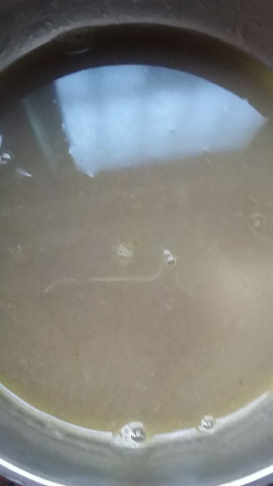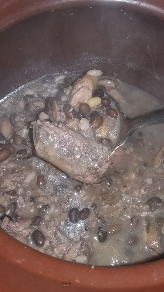 想来想去,想起黄芪和龙眼肉有敛汗固表的作用,而且我之前也看过”用泥鳅和黑豆治小儿盗汗“的医学报道,加上我们家刚好有朋友送的泥鳅,所以我就想用泥鳅汤来治孩子的盗汗了。为了使口感更好一些,我又加入了一段拍碎的铁棍山药一起煲汤,想不到煲出来的汤特别好喝,小不点也很配合喝。如此喝了两次泥鳅汤后(约2小碗),小不点的盗汗竟然全好了(喝泥鳅汤的当天晚上他就没有盗汗了),连续观察了近一周的时间,小不点半夜时也没有再出现盗汗的症状了,可见用泥鳅黑豆黄芪山药汤治小儿盗汗的效果还是很不错的。 看,这就是专门给小不点治盗汗的泥鳅黑豆黄芪龙眼肉山药汤了。当然了,这汤不但适合盗汗的孩子喝,健康的人也是可以喝的这是喝剩时拍的照片。因为饲养的泥鳅个头比较大(与其他材料一起煲汤之前,要先处理干净泥鳅,把内脏弄掉,然后用油把它煎香煎黄,然后再煲),所以看上去才这么大块的。