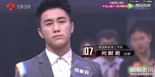 在第一期节目中,何猷君在百人名单中是排名第七,当然他对于这个名次是非常不满意的,按照他的一贯作风,第一非他莫属~ ![]() 所以在宣布名次的时候,可以看到他表情有些失望,不过如果是平常人听到这个成绩已经非常开心了,有几个是高考状元,清华北大的高材生,也都排名在50名之后,不过第一名排名的常俊硕只是一个14岁的初中生,的确是让许多人大跌眼镜的~ ![]() 连续两次闯关,何猷君都以第一的成绩晋级,第二次的比赛中他就已经是30名的直通选手了,当然非常为他的直接晋级感到开心,不过因为后来不能再看到他的精彩表现而感到遗憾~ ![]() 第一次节目中只出现了何猷君两次比赛的场景,让人真是看得有些不过瘾,后来就一直期待何猷君的再次出镜,等了一个多月,在上周终于等到何猷君的再次参赛,可是在节目中居然听到何猷君已经因为意外退赛了,相信很多粉丝都和我的心情一样跌入谷底~ 随后也在网上搜寻了一些关于他退赛的消息,他本人也出来回应说是因为浴室摔伤事件导致脑震荡,不过对于一个普通人来说这个太不足以成为退赛的理由了,因为这种节目毕竟是有一定的宣传效果,何猷君这么风光的人物,节目组肯定可以等摔伤恢复之后再重新录制,而且从摔伤到节目播出还有两个月的时间,从各种网络的判断也可以看出何猷君退赛绝非这么简单的原因。 不过不管是何种原因,我还是愿意相信何猷君是一个勤奋的天才,也希望姗儿学习何猷君这样不因为家庭有多么丰厚的财富,而要靠自己的努力去获得成功的精神! 本作品未经作者许可不得转载,转载请征求作者意见。擅自转载使用,将保留追究其法律责任的权利! |