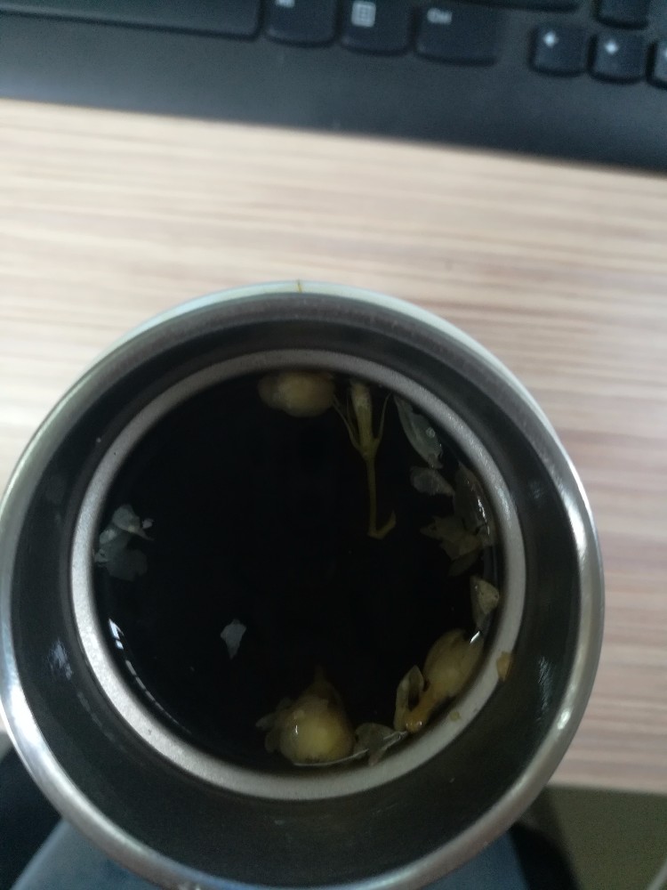 过了一会,感觉有点儿渴了,打开杯盖就闻到了一股清香味,很提神的,也觉得非常的熟悉,这是什么味道,为什么感觉我闻过,貌似很喜欢的。这是什么,立马往杯子里面看了看,一看飘在上面的花朵,更加觉得很熟悉,闻着味道,看着花朵,就这么想起来是小时候经常会吃的,花蜜很甜,每当开花的时候,我和小伙伴们就都在大树上采摘花朵吃。老家有一颗非常大的书,每年开花都是挂满枝头,白色的很漂亮,香味很好闻,更加的好吃,我们都是会采很多往嘴里吃,实在是太好吃了。