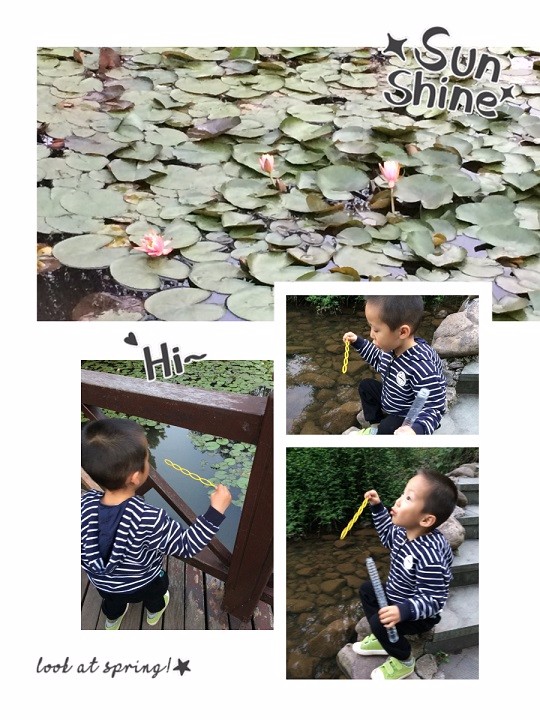![]() 宝贝来到这个公园里很兴奋,因为很少来,所以很有新鲜感。出来的时候,还从家里拿来了一个泡泡,这样在公园里可以玩泡泡啦。宝贝时而迎风跑动,时而嘟着小嘴吹着泡泡,一串串的泡泡在空中飘舞着,又好看又梦幻。时不时的吸引来小朋友一起追逐着泡泡。公园里景色也非常的漂亮,枚红色,大红色的映山红非常的艳丽。还有青翠欲滴的树木,看着就很舒服,春天真好,到处都是美丽的景色。 ![]() 调皮的宝贝还往花儿上面吹泡泡呢,吹出的泡泡轻轻的停留在花儿或者绿叶上,映衬出的颜色更是漂亮。泡泡可以停留片刻,不过风一吹或者一会儿它就消失啦。 ![]() 公园的一角还有小桥流水,湖里有红鲤鱼,还有荷花。小荷才露尖尖角,亭亭玉立的立在水面上,能看到几朵花苞,不过还没有开放。等再过些天,这一湖里一定会有茂密的荷花哦,一定会非常的壮观。宝贝站在小桥上,往湖里的鱼儿吹泡泡呢。宝贝:”鱼儿,鱼儿,快游过来……“ 嘿嘿,可是鱼儿一下子就被吓跑啦,不过没一会儿又游过来啦,其实这些鱼儿胆子都挺大的呢,每天都会有那多人经过,很多会给它们喂食,鱼儿胆子都很大的啦。宝贝干脆坐在了旁边的一块大石头上,不仅可以小憩,还能边看鱼儿边吹泡泡,泡泡时而飘在水面上,时而消失在水里,也有胆子大的鱼儿游过来去弄泡泡的,也许鱼儿以为是什么好吃的东西吧,嘿嘿……在这公园里玩的好开心呐!