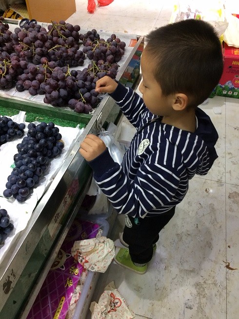 晚上逛完公园后,我们去附近的水果店里看看,准备买点儿水果。问宝贝想吃什么呢,宝贝说不知道,等到店里看看就知道了。一到了店里,宝贝就开始挑选水果啦。葡萄,芒果,小番茄……然后还看到了桃子,不过我没同意买桃子,这时候的桃子口感不好吃的,买回去也是尝一口就不会吃的,浪费呢,所以我坚决不买。而且价格也贵,将近二十块钱一斤的桃子,还不如买别的水果。宝贝也还听话,说等以后成熟些,味道更好的时候再买桃子。