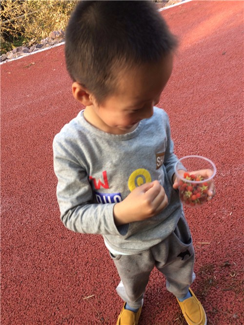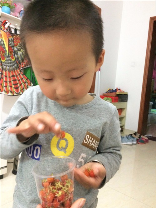 今天我们往山脚的另外一头走走看,一路上我和宝贝一直盯着路边看,终于被我们发现啦。有几颗红彤彤的覆盆子哦。今天出来时我们带了一个一次性的杯子,这样摘来的覆盆子可以放在被子里,不容易捏坏了。挂在藤枝上的覆盆子,晶莹剔透,看着就十分的诱人。小时候这种果子山上会很多,不过现在貌似越来越少了呢。好不容易发现了一株。上面长着的覆盆子有的成熟了,有的还没有成熟,我把其中的那些成熟了的摘了下来,而没有很熟的那些就先留着,过几天等成熟了再来摘吧。 ![]() ![]() ![]() ![]() 这个只有成熟了才甜,没有成熟的即使摘了味道也不好,就浪费了呢。因为这个树上是长有很多刺的,所以我就让宝贝在旁边看,帮忙拿着杯子就好,摘就由我来摘吧。我还一边摘呢,宝贝就一边开吃啦。宝贝说红红的真甜……尝了几颗我就让宝贝先别吃了,回家后用开水洗洗再吃吧。 ![]() 摘的也不是很多,就一株树上摘了大概也就半杯子。可以满足宝贝的嘴瘾啦。我们就回来了,因为山脚下飞虫也多,被叮咬的话会痒。回到家后,用开水洗了洗,宝贝就享受这美味的覆盆子啦。宝贝吃了几颗之后,直接拿着杯子来到了室外,去分享给邻里间的其他小朋友一起吃喽。 ![]()