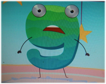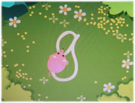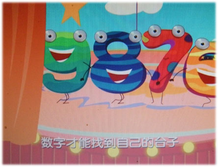 ![]() ![]() 在学习数字的环节中,秃秃总管那个9叫作小青蛙,因为9是绿色的,而且身上还有条纹,看上去和青蛙的条纹很像呢!当7出场时,秃秃又指着7大喊长颈鹿,可能是因为7的身体好像长颈鹿那长长的脖子吧~~看完这几个字母之后,小家伙突然问我“斑马呢?”,当时问得我一愣,什么斑马啊?后来琢磨着,是不是以前看过的哪本书里,有青蛙、有长颈鹿、还有斑马啊,所以他觉得青蛙和长颈鹿出现后,该斑马出现了……