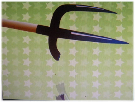 ![]() 再后来,农民伯伯又给了乐乐猫一把镰刀,秃秃刚一看到镰刀,就急忙大喊“镰刀5!弯勾5!”。我知道,这是姥姥和奶奶教他的,只是没想到,他在日常生活中看到镰刀,也能立刻回想起曾经教给他的数字5来……可是人家节目中的提示,把镰刀看作了大写字母G啊~~算了,我没要求秃秃必须和节目里学,怕限制了他的思维能力和想象力。不过在看了两三遍之后,他也会在出现镰刀时脱口而出说“G”了……
