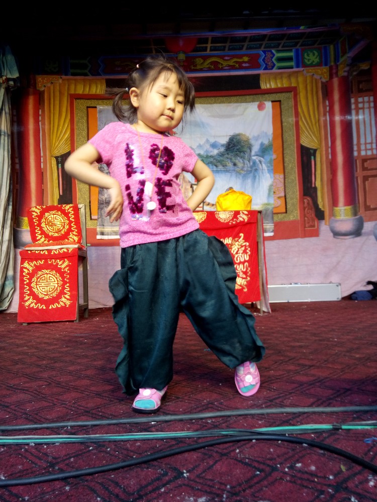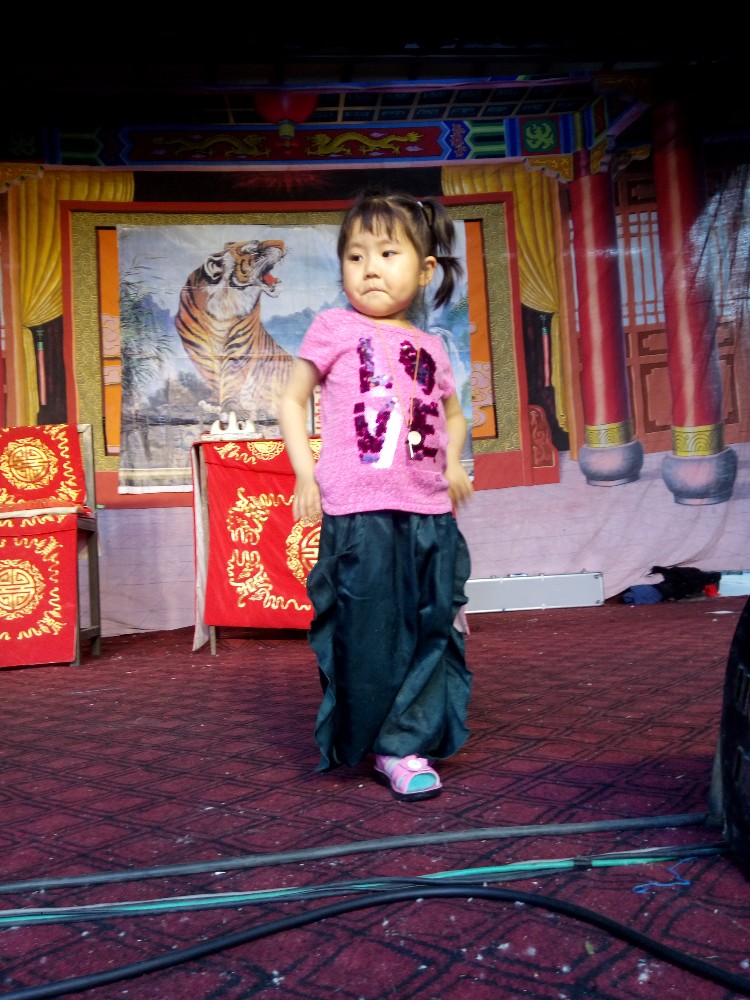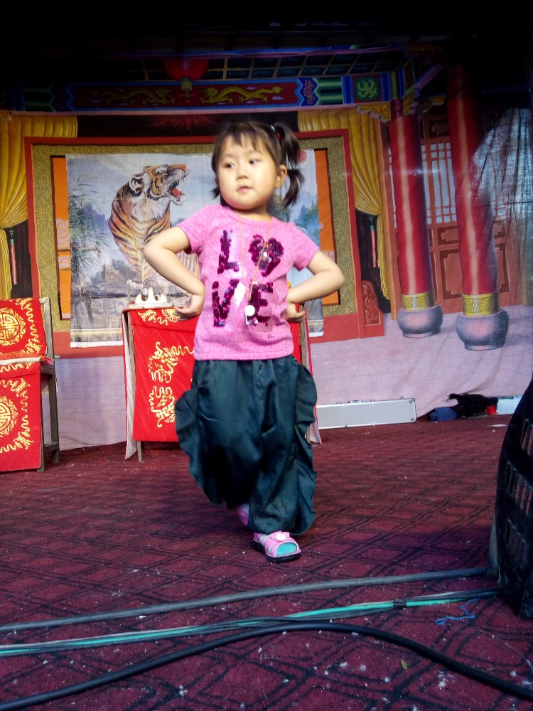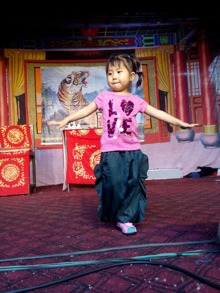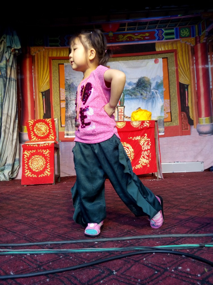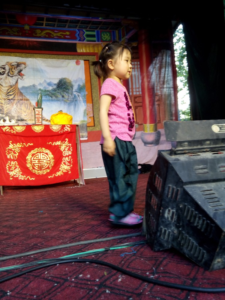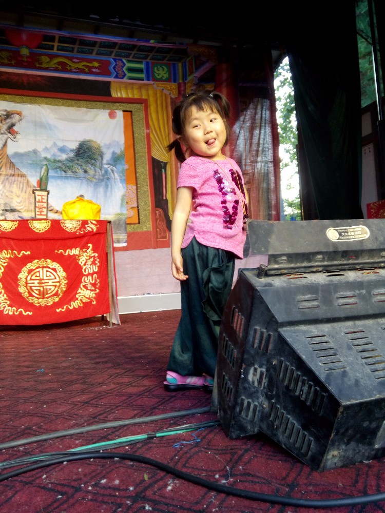 去的时候,戏班子刚好休息了,空下来戏台子,带着孩子吃饱了就过去让孩子看看,孩子要上去,这个戏台很高,我就把孩子抱上去,孩子在上面玩的特别开心呢,自己开始招呼其他的小朋友一起上去玩,还自己跳起舞了,玩的开心,就趁机给孩子照相,这段时间忙,很少给孩子照相了,今天孩子的表现不错,而且自己也能腾出来手了,就给孩子拍照,孩子很配合的。