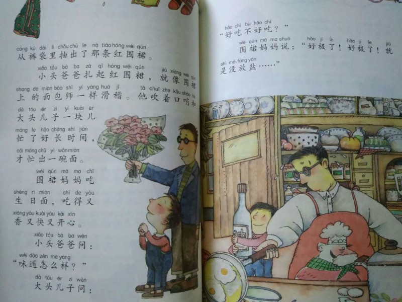 ![]() 我们现在抛开动画片的影响来看一下这本书。原来这本《大头儿子和小头爸爸经典原著故事合集》是原著作者郑春华老师的推荐版本。能够获得原作者的青睐,自然有其与众不同之处。首先,它的插图生动有趣而且数量相当多。绘者沈苑苑是著名的儿童插画家,获奖无数,是首位给大头儿子和小头爸爸绘制插图的画家。书中几乎每一页都有插图,个别版面的图画篇幅甚至超过了文字。这样图文结合的方式更容易吸引低年级的孩子。其次,它的文字很大很醒目。这本书是教育部新编小学语文教材二年级下册的指定重点阅读书目。我翻了翻书中的文字,难易程度确实比较适合二年级左右的孩子,孩子看起来不会太费力,也就更容易集中精力看下去。低年级的小朋友识字量有限,如果看文字过于密集的书,会因为难度太大而失去兴趣。在时间充足又有兴趣的情况下,孩子能一口气看完整本书当然好。但如果孩子学业压力大,只能利用睡前十几分钟的阅读时间看看书的话,这本书的编排就再好不过了。因为书中每一篇故事都是独立的,篇幅短小,每篇只有几百字,孩子轻轻松松看完几个故事就可以安心睡觉了。 ![]() ![]() ![]() 书中的很多故事也有很明显的时代印记,这些故事最初是作家最早发表在儿童期刊上,为满足儿童阅读需求而创作的,是原汁原味的“大头儿子和小头爸爸”经典原著故事。看着这些故事,我仿佛回到了自己的童年时代,那个顽皮可爱、长着大脑袋的大头儿子和总是陪儿子一起疯玩、有很多好主意的小头爸爸,还有那个温柔善良、爱唱歌、喜欢洋娃娃的围裙妈妈,正是对一个温馨有爱家庭的最好诠释。 本作品未经作者许可不得转载,转载请征求作者意见。擅自转载使用,将保留追究其法律责任的权利! |